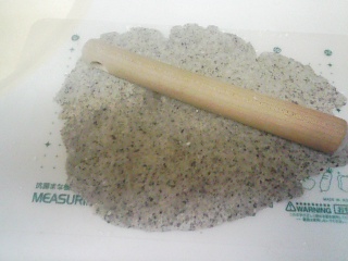 私は麺棒の代わりに、(貧乏性ですが・・・)サランラップの芯を使っています。