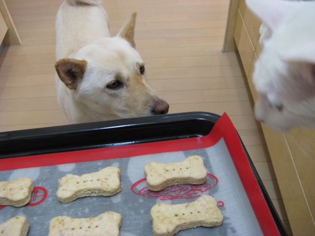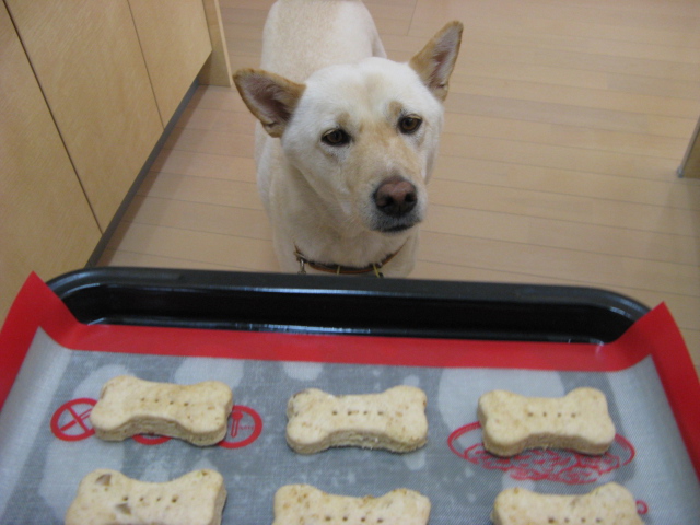 このスコーン、人用にも作っていて人用はただ丸めただけなんですが、骨形にした空用のほうが見た目すごく美味しそうに見えるんです^^