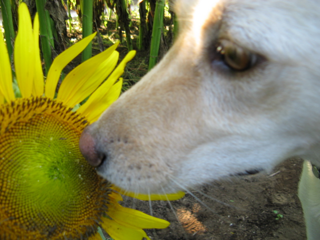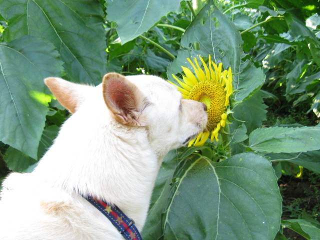 大きな花が珍しかったのかクンクン匂いを嗅いでたりして^^