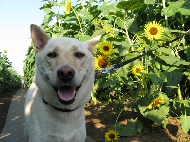 ヒマワリ畑を空との~んびり歩きながら、この夏も振り返ると空と一緒にたくさん遊んだナァって・・・