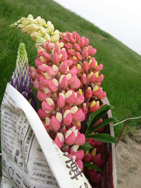 6本の花束・・・両手じゃないと一人で持ちきれないほどです(^_^;)