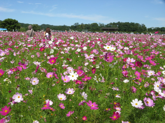 近所のコスモス街道はまだまだだったけど、ここはもうほぼ満開!
