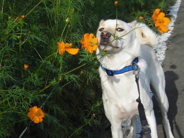 ひなちゃんはコスモス食べちゃいそうですか?食にはあまり関心がないように見えたけど~地元では違うのかな?