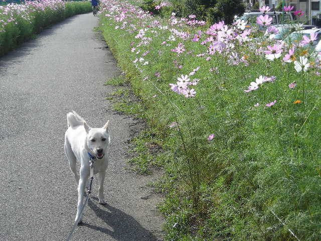 日中はまだまだ暑いけど、朝晩の散歩の時間は快適になりました。ついつい長めの散歩になってしまっています。