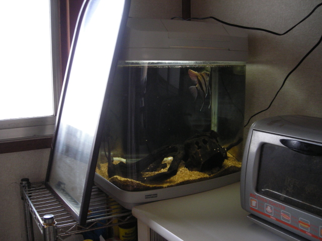 一番困ったのがお魚ちゃんたち・・・90センチ水槽から、45センチ水槽にみんな押しやったら小魚は居なくなり、エンゼルちゃんだけが残りました(>_<)
