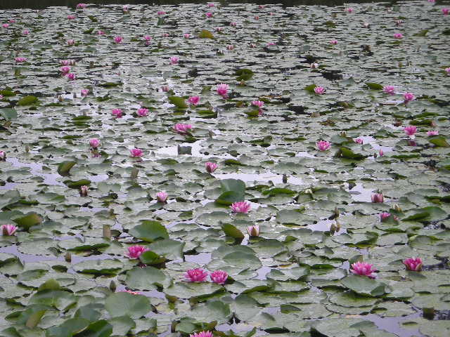 園内の中心には大きな池がふたつあって、きれいなスイレンが咲き乱れていました。