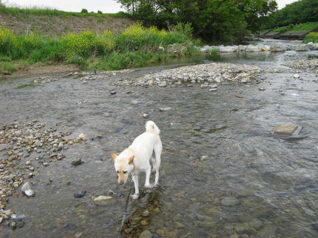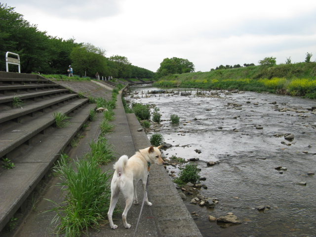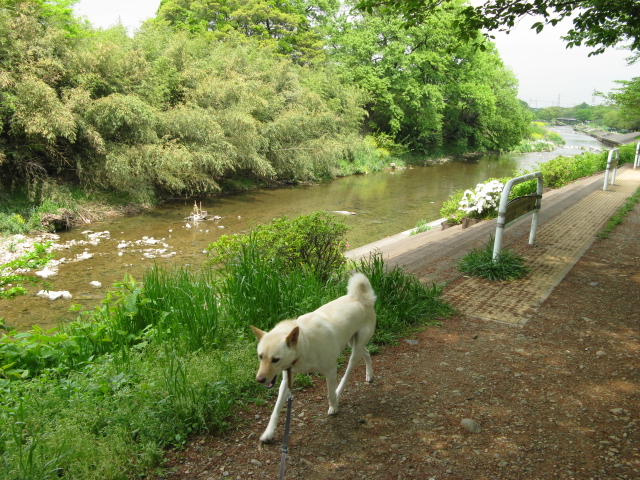 川辺をご機嫌でぐんぐん歩いて・・・ずっと上流まで。