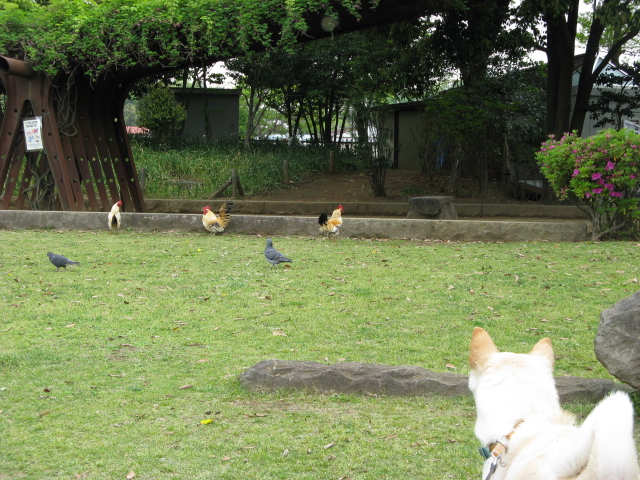 放し飼い(?)にされてるニワトリさんも・・・鳩に混じって・・・野生なのか?^_^;