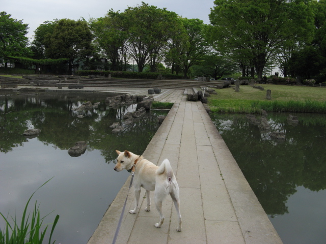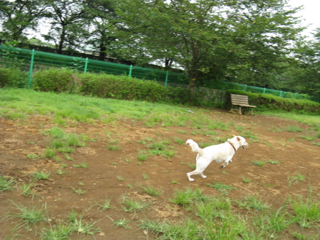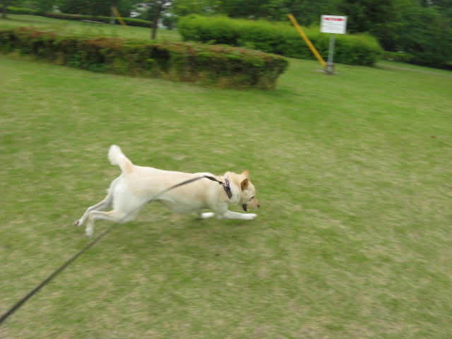 とりあえず広場でクルクル走りをさせて満足させてあげてから・・園内を散策開始。