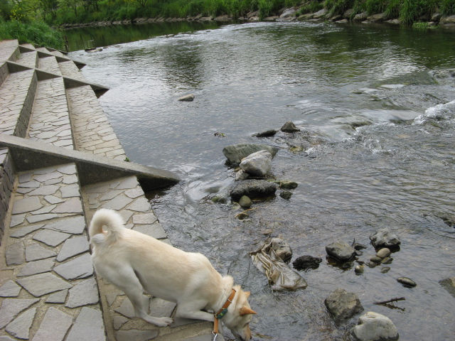 そんなきれいになった柳瀬川のお水を空もちょっと味見です^^