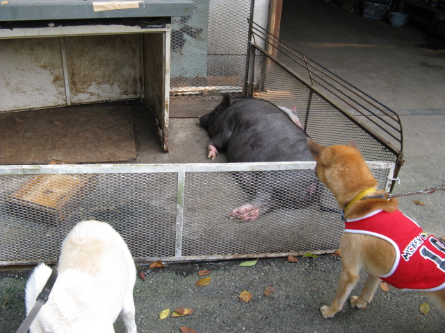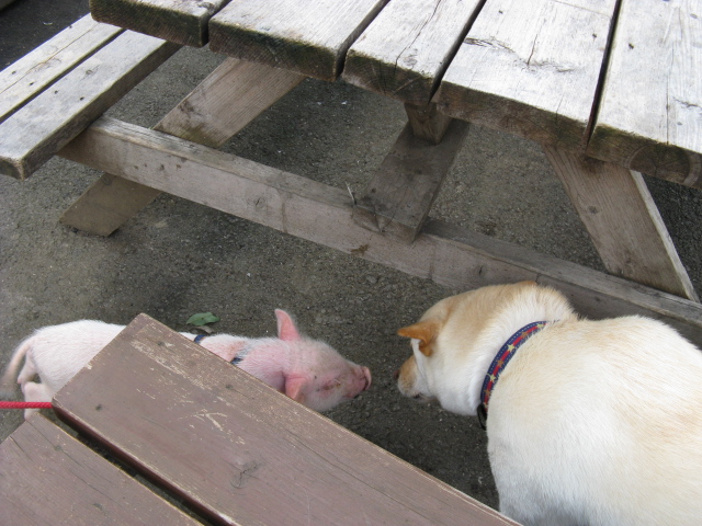 空はなぜか動物が大好きなので、ミニブタ赤ちゃんに挨拶したり