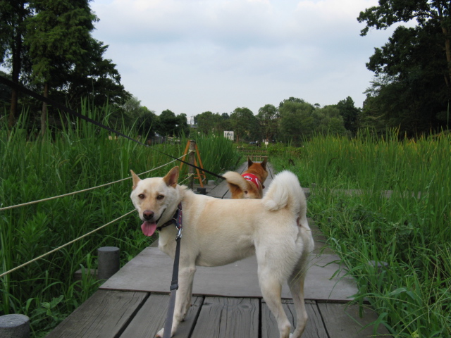 たくさんのワンコがお散歩してました~この公園はなぜか和犬や雑種率高め~かわゆい子ばっかし^^