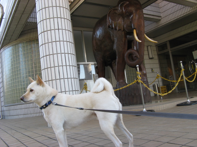 まずは記念館前で記念撮影^^象さん?マンモス?の鼻と空の尻尾がそっくりです(#^.^#)