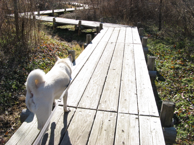 こんな木道は渡らなくちゃ気がすまない空はしっかりずっと先頭をキープです。