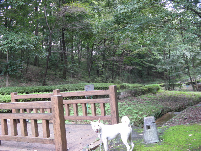 芝生の広場もあり広場の周りをいくつもの湧き水でできた小川があり、小さな池や滝もあり、