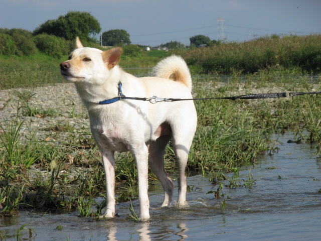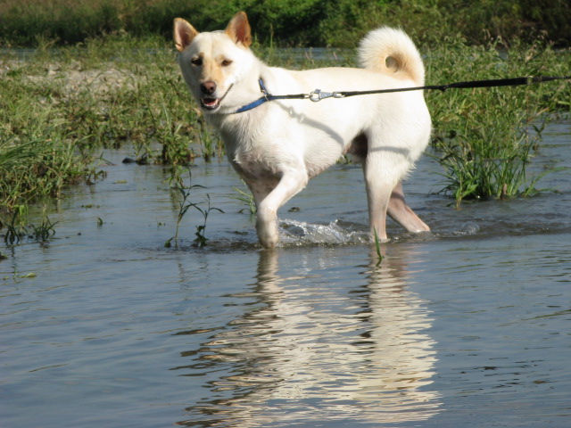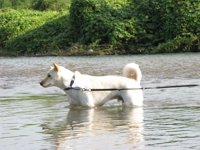 深いほうまでどんどん進んで行ってしまう空・・・・リードを持ちながらついて行くパパも大変です(~_~;)