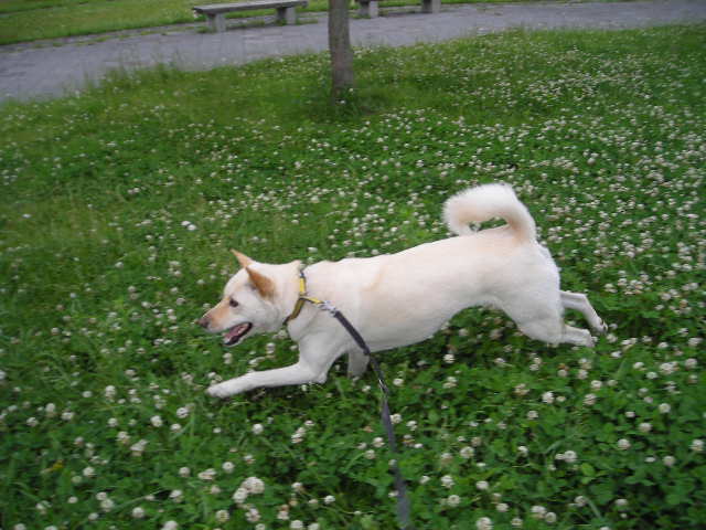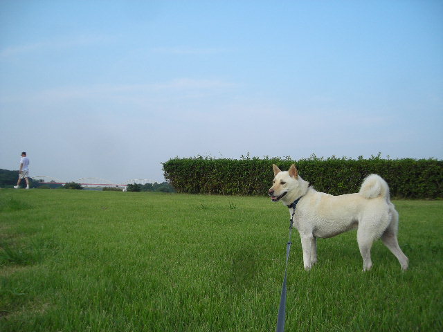 空がちゃぷちゃぷと歩いていたら柴犬を連れたおじさんが、凄い凄い!と空を褒めてくれました^^