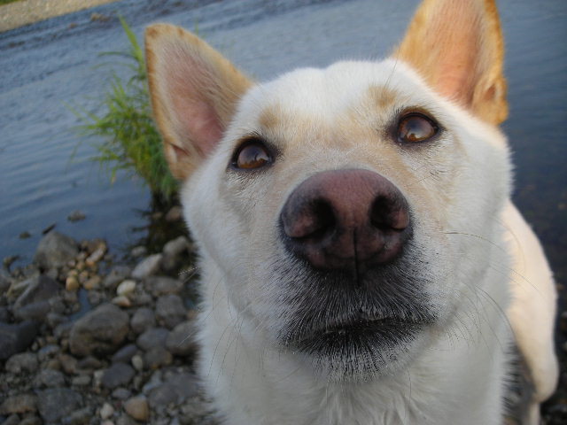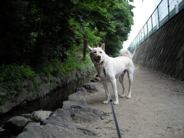 さっきの小さい川よりお水はきれいだで冷たくて、気持ちがいいぞ~~