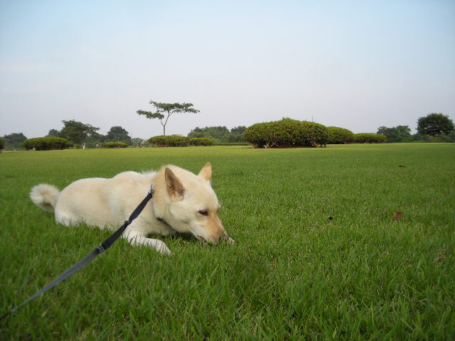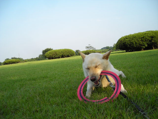 濡れた体に風が気持ちがいいね~♪ ここは芝生の公園が素晴らしいのです。