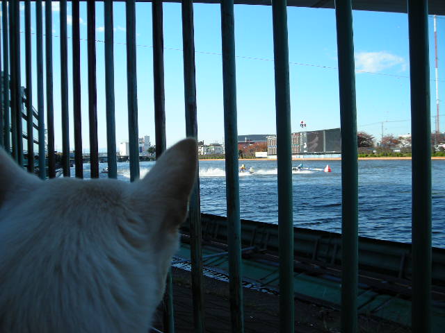 今日もボートが出ていました。スーイスーイととても早く、空は競争しました。