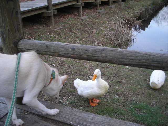 このアヒルさん、犬を全く恐れないの。空に近づいてごあいさつしてくれました。