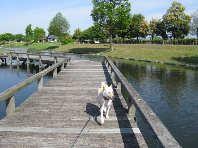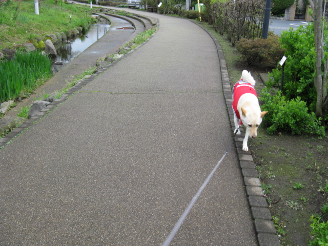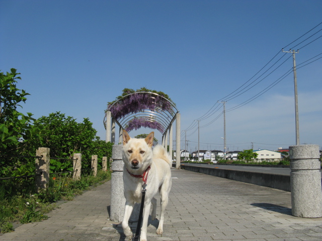 土手を歩いたり、上の舗装された歩道を歩いたり、交互に行き来してとってもご機嫌な空♪
