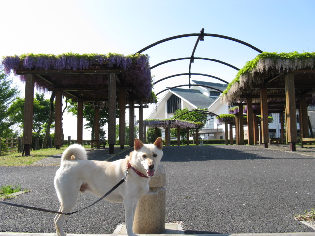 体育館脇の休憩場所だってもちろん藤棚でーす!