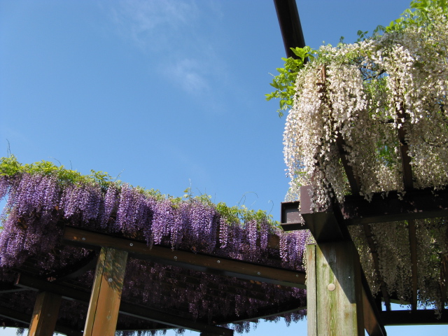 この藤棚だって紫と白で青空に映えてとってもきれいでした。