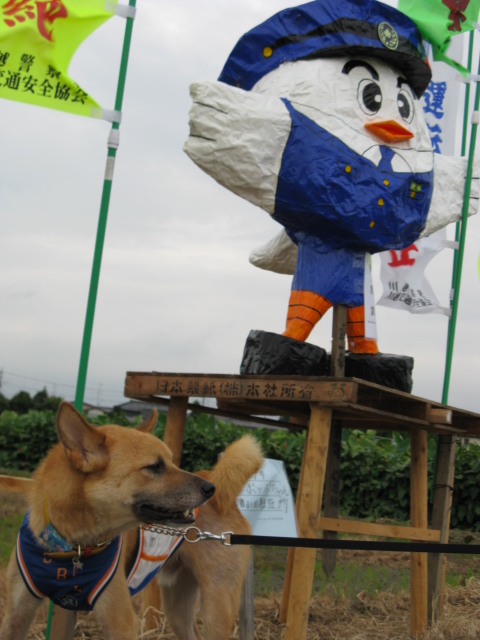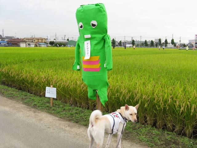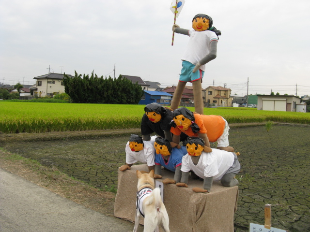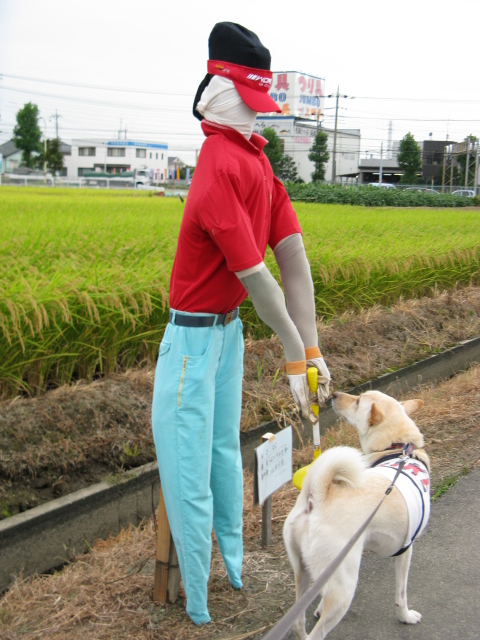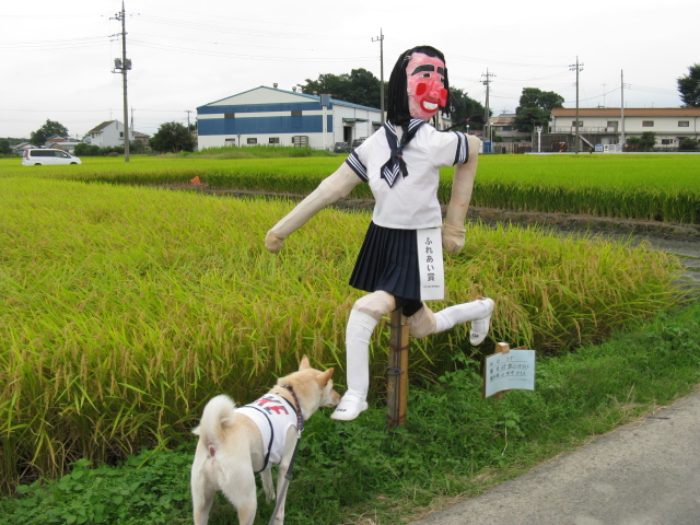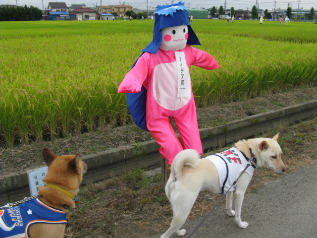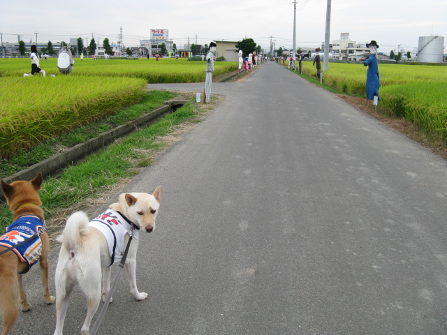 車の中でぐったり寝ていた2頭と無理やり起こして案山子見物!