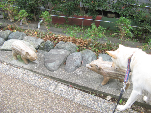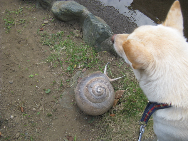 つり終わった後の紐についたままのサキイカが所々落ちているのです。(口に入れる気マンマンの2頭・・・)