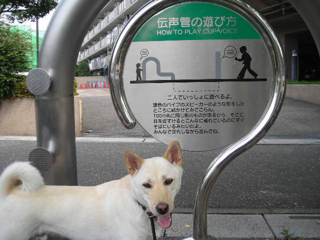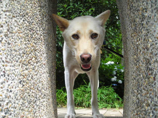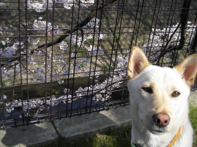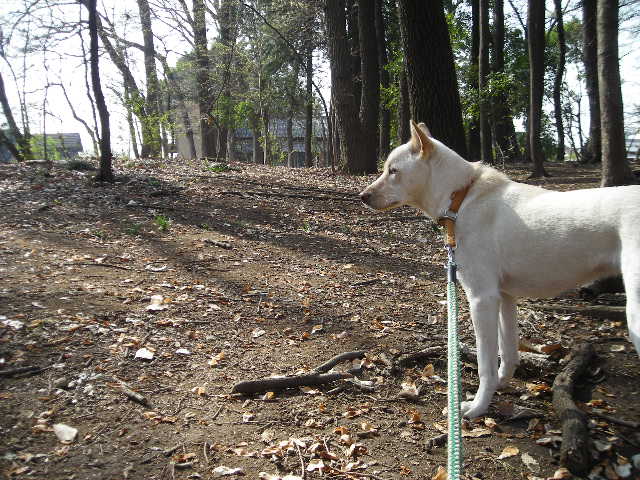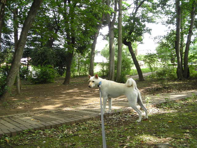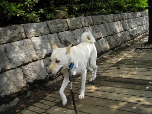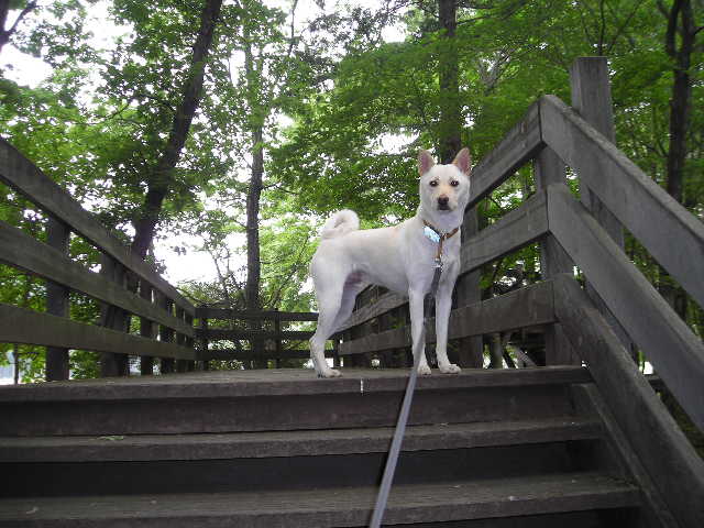 白い大き目の中型犬はみんな紀州犬と思われがち^^