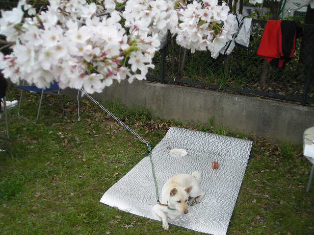 桜の真下の日陰の場所をゲット!空も気に入ったみたいで早速くつろいでます。