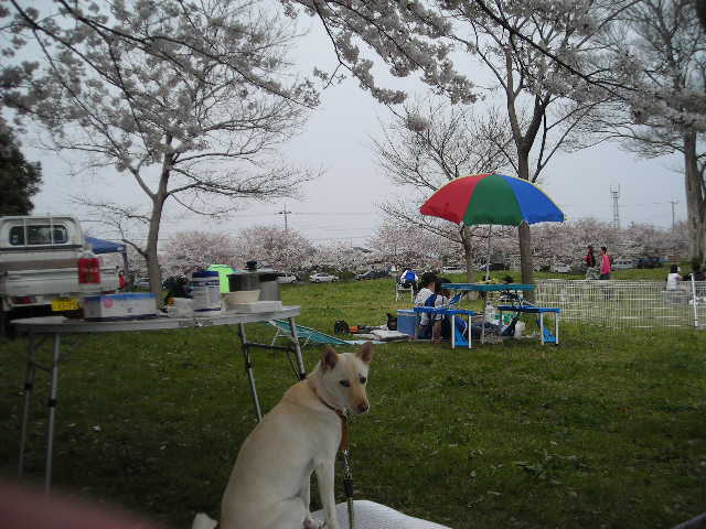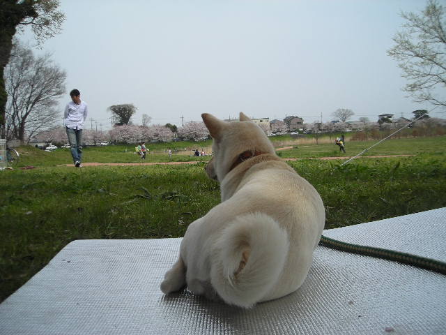 お花見したんですね。いいなあ。空ちゃん、ほんとにお行儀よく座ってお花見気分ですね。うらやましいです。