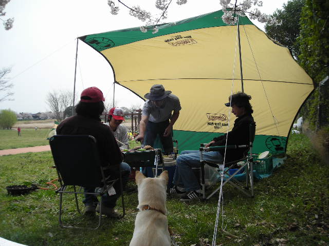 火の番グループの方からかぐわしい香りが・・・・いい子にお座りしてお肉が運ばれてくるのを待ってます。