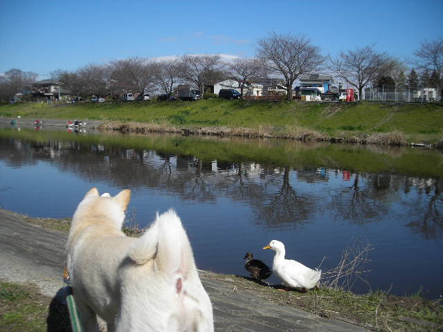 アヒルちゃんは親子かな?ずっと寄り添ってたけど・・・アヒルの子は白くないの(^^ゞ