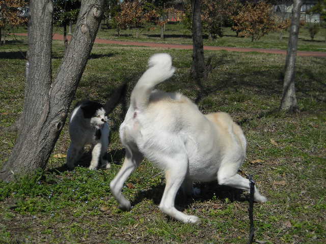 ネコちゃんに会えて空は大喜び^^一生懸命遊びを誘ってるけど…(^^ゞ 威嚇されてますね^^