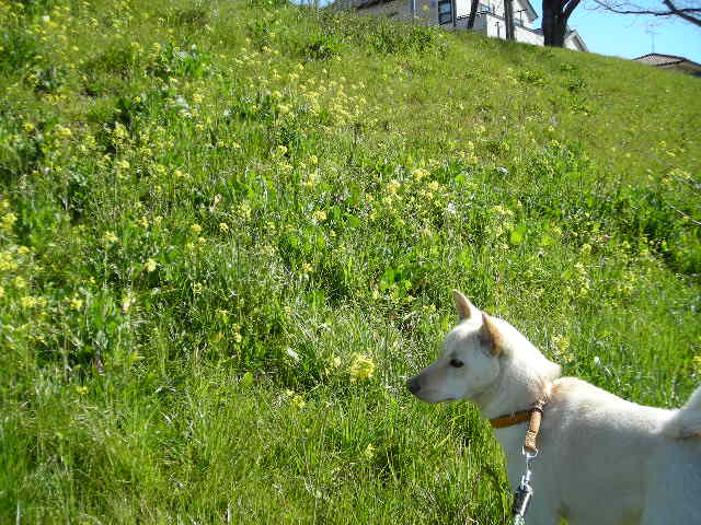 春の土手は緑がいっぱい!菜の花がいっぱい咲いてます。