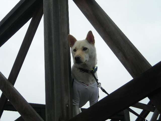 お嬢ちゃんも高い場所は好きですか?ワンにも向き不向きがあって、高い場所が苦手なワンもいるみたいですね!