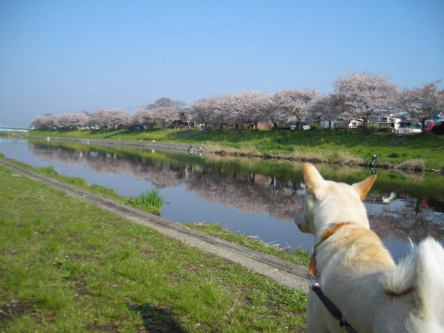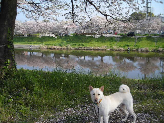 草の味見をする空くんの顔がなんだか可愛い~☆と思って眺めていると、「逆さ桜」とっても美しいですね!!