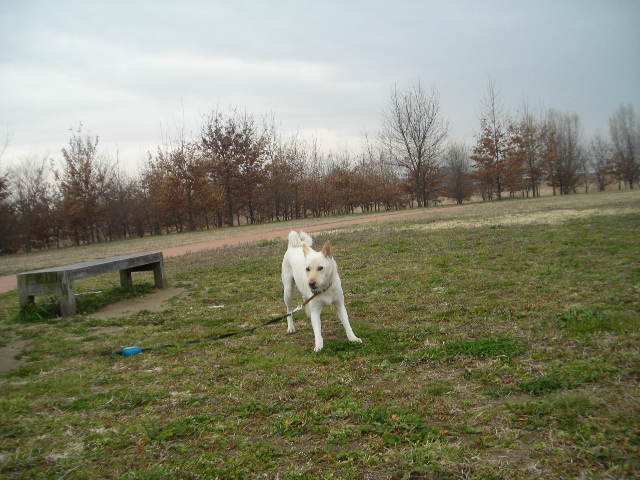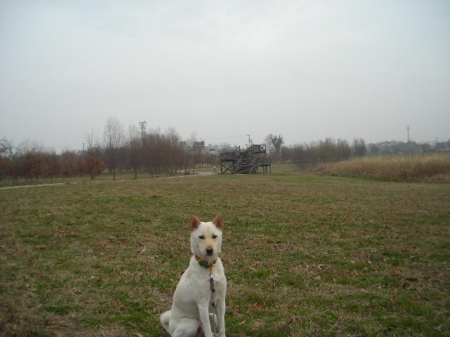お天気はイマイチだけど楽しいお散歩になるように、ひろーい公園にやってきました。