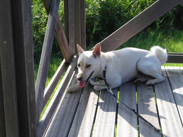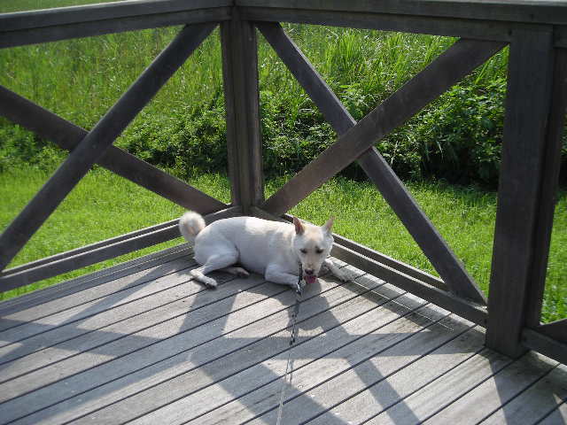 大好きな見晴らし台の、唯一の日陰ポイント(笑) ここで空はてこでも動かなくなりました~~
