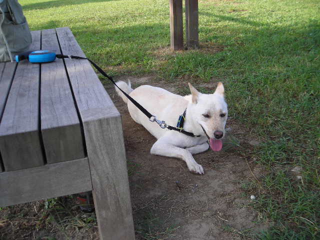 (ホントは朝の散歩をパパと済ましているのであまり歩きたくない