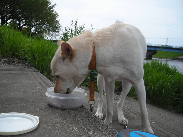 外で食べるご飯はカリカリフードです。日頃手作りご飯を与えてるのですが、たまにカリカリを見ると大喜びして飛び跳ねます。複雑です(T_T)