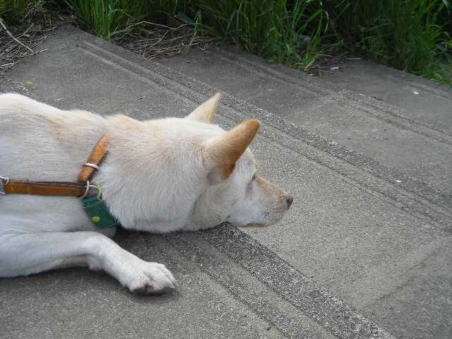 濡れるのが嫌みたいで草むらにも入っていかず、無理やり歩かせても