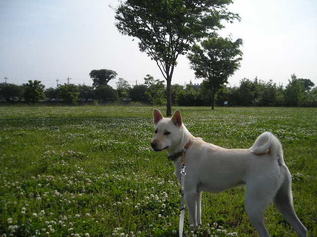 広場のあるほうは草を刈っているけど、それでも背が低いシロツメクサでいっぱいです。
