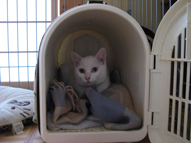ちまちゃんは変わらずサークル内のキャリーバックの中。寝床はここに決めたようです。