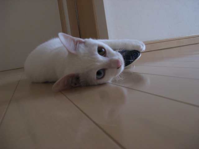 カブトくん、やんちゃになっていますねえ。モップでそんなに遊べるんですね。遊びすきなんでしょうね。