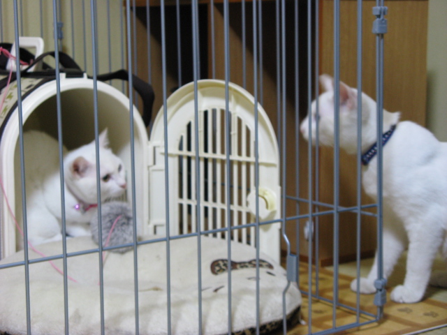 自分にそっくりなキョウダイ猫にカブトは興味津々だけど・・・
