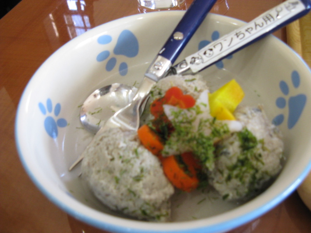 今日のワンちゃんランチはいわしのつみれ汁~♪