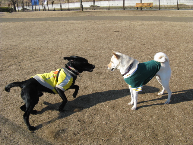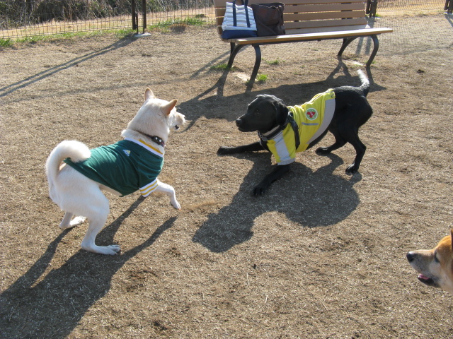 今年始めてのドッグランは仲良しリキちゃんと安比奈です^^